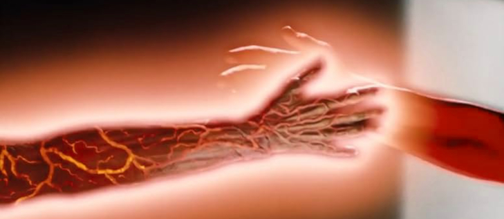 Before we unroll more words of the praise we need to harp one more time on the observation that Altered States is a 1950s monster romp, but fashioned with intelligence and inspiration. Substitute Hypnotism for drugs and an isolation tank, change the transformee into a woman, and the picture is awfully close to the second-tier horror effort The She-Creature, from 1956. Both features resurrect a ‘primordial version’ of a person from eons in the past. Marla English becomes a female beast-thing from the dawn of time; Ed Jessup becomes a primitive man and eventually two or three forms of Primal Ooze from the dawn of life itself. When he suffers mushroom flashbacks, he alternates between himself and some sort of organic energy-thing that looks like human flesh ‘blooming’ into amorphous shapes.