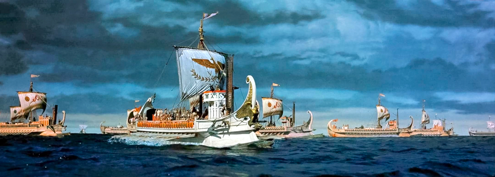 It does look remarkable, with a fine image that gives interiors a great feeling of depth, and detail that lets us take in the excellent matte work as well as the astounding wide shots of masses of extras. As is the norm for 4K encodings, the colorists leave many scenes dark, knowing that 4K TVs will not let shadowy corners clog up, or bright skies burn out. Without having to ‘even out’ the contrast range, scenes have a greater visual impact. The Tireme battle plays out under dark skies, while the chariot race unspools in bright sunshine. Those white horses really stand out.