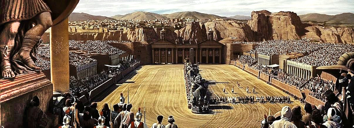 On VHS, Ben-Hur was pan-scanned until the chariot race, at which point the image shrunk to letterbox proportions. Originally filmed in ultra-wide Ultra Panavision (2.76:1), the movie became a ribbon across my ‘glowing Sony’ monitor, then one of the best choices for NTSC home viewing. The letterbox slot was so narrow, one felt like pressing one’s nose into the TV to see better.