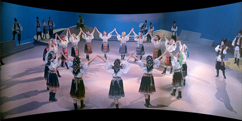 As soon as I put the disc in, I thought, this thing has got have some ballet in it. The first-act closer is a dazzling folk troupe presentation. Again, the angles make all the difference — the Soviet directors aren’t content to stand back and stay static, as happens too often in the American-produced pictures. The dancing and costumes are certainly tops. The show finale is about a dozen excerpts from ballet performances, presumably culled from longer sequences in some of the original films. [The titles in the list I have are only in Russian, so I can’t tell one from another. ] We see a big chunk or two from Giselle but also some less familiar operas ( Othello?). The most amusing is a beautifully costumed fantasy in which a ballerina plays a magic pony, with a perky tail — we almost believe that she is an animal. It’s utterly charming.