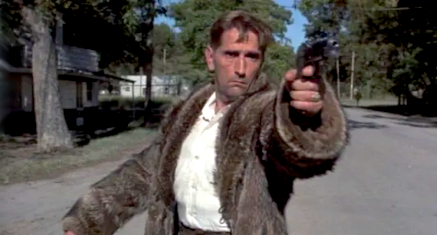 A few scenes look as if the actors are using live ammo, as when Harry Dean Stanton shoots a gumball machine. I saw effects whiz A.D. Flowers at work, and to do an effect like this, his men would shoot ball bearings from a custom air rifle. Who’s to say that a shot at that glass gumball globe wouldn’t bounce back and hurt a cast member?