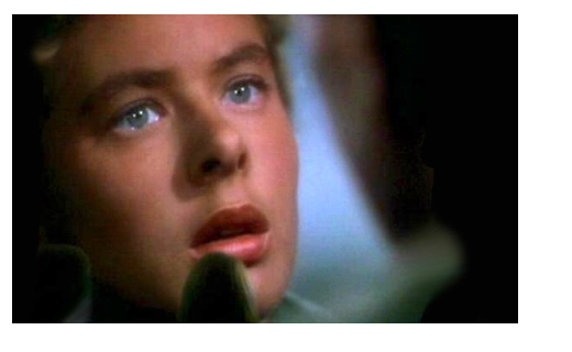 The ending leaves such an indelible memory, the film’s soundtrack album had no text on its cover, just a close-up of an anguished, tearful María, listening to Roberto’s heart-wringing farewell. Ms. Bergman becomes the Technicolor queen of the bleary, soggy-eyed monster close-up. The trembling María seems ready to explode from the screen.