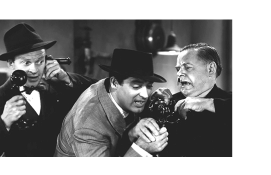 Cary Grant really works for this one. He’s matched at every turn by Rosalind Russell, in what must be her career-best appearance. She is dynamic and actually sexy … even when she (or her stunt double) hikes her skirt up to chase and tackle a man on the street. The scores of complex, rapid-fire speeches ae delivered so quickly that awards could have been given out for enunciation above and beyond the call of duty. Helping with the overlapping dialogue are a new gang of smart-mouthed newsmen: Porter Hall, Cliff Edwards, Roscoe Karns, Frank Jenks, and Regis Toomey. Abner Biberman is Burns’ on-call gangster aide, who thinks that ‘albino’ is a foreign nationality; his girlfriend is a useful tool for getting poor Bruce arrested for mashing.