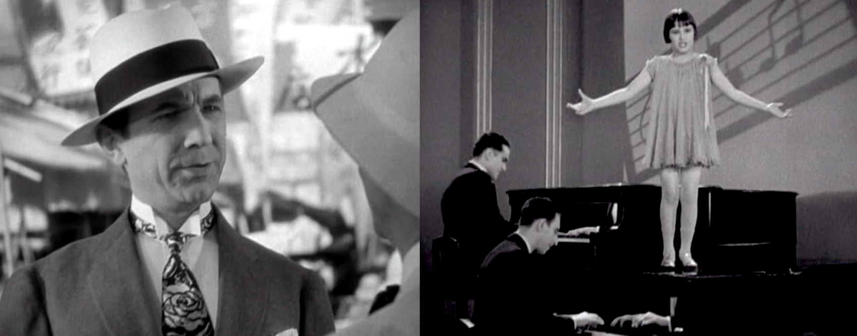 The number may be dumb and taste-challenged, but the song is cute and Holloway is innocent … it’s charming. Near the beginning, a cutaway to the rooftop audience singles out a Chinese woman in a man’s tuxedo, leaning provocatively against a wall. Is that a holdover from Sternberg & Dietrich’s  Morocco, where Dietrich performs dressed as a man, and kisses a woman?  I don’t recall a glut of casual lesbian references in pre-Code movies, but the subtleties have to be pretty obvious for this reviewer to catch on.