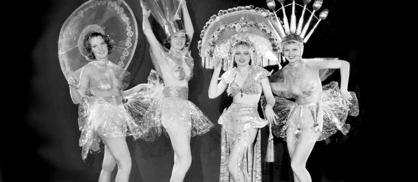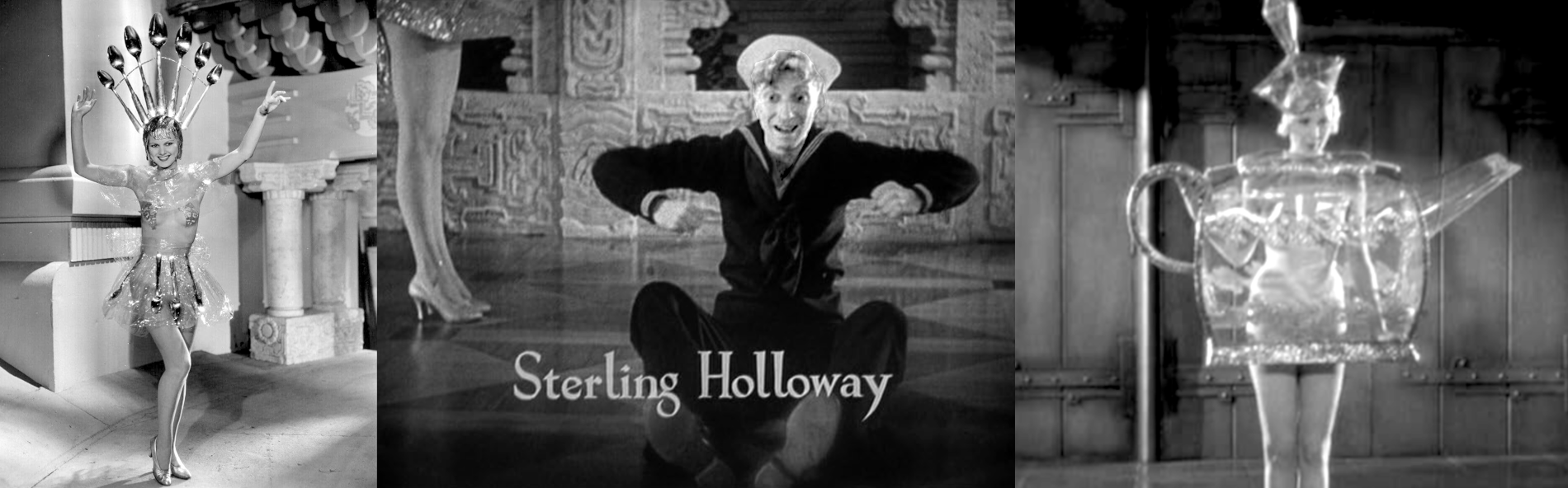 The show delivers a shock or a laugh every few seconds, and some truly weird highlights. Franklin Pangborn introduces a musical number for the rooftop garden, a song by Leo Robin and Ralph Rainger called ‘She Was a China Tea-cup and He Was Just a Mug.’ Favorite supporting actor Sterling Holloway dances in a sailor suit, trying to attract a ‘Chinee Doll’ (Lona Andre). Parading about are several semi-nude showgirls dressed as kitchen cups and utensils, including a big transparent Teapot. It’s not exactly Hollywood’s apex of Good Taste. Hollywood had no shortage of dream girls seeking any opportunity to be singled out on film. The un-billed human Teapot is played by showgirl Gwen Zetter, a Swedish beauty born as Gunhild Ingrid Zettergren.