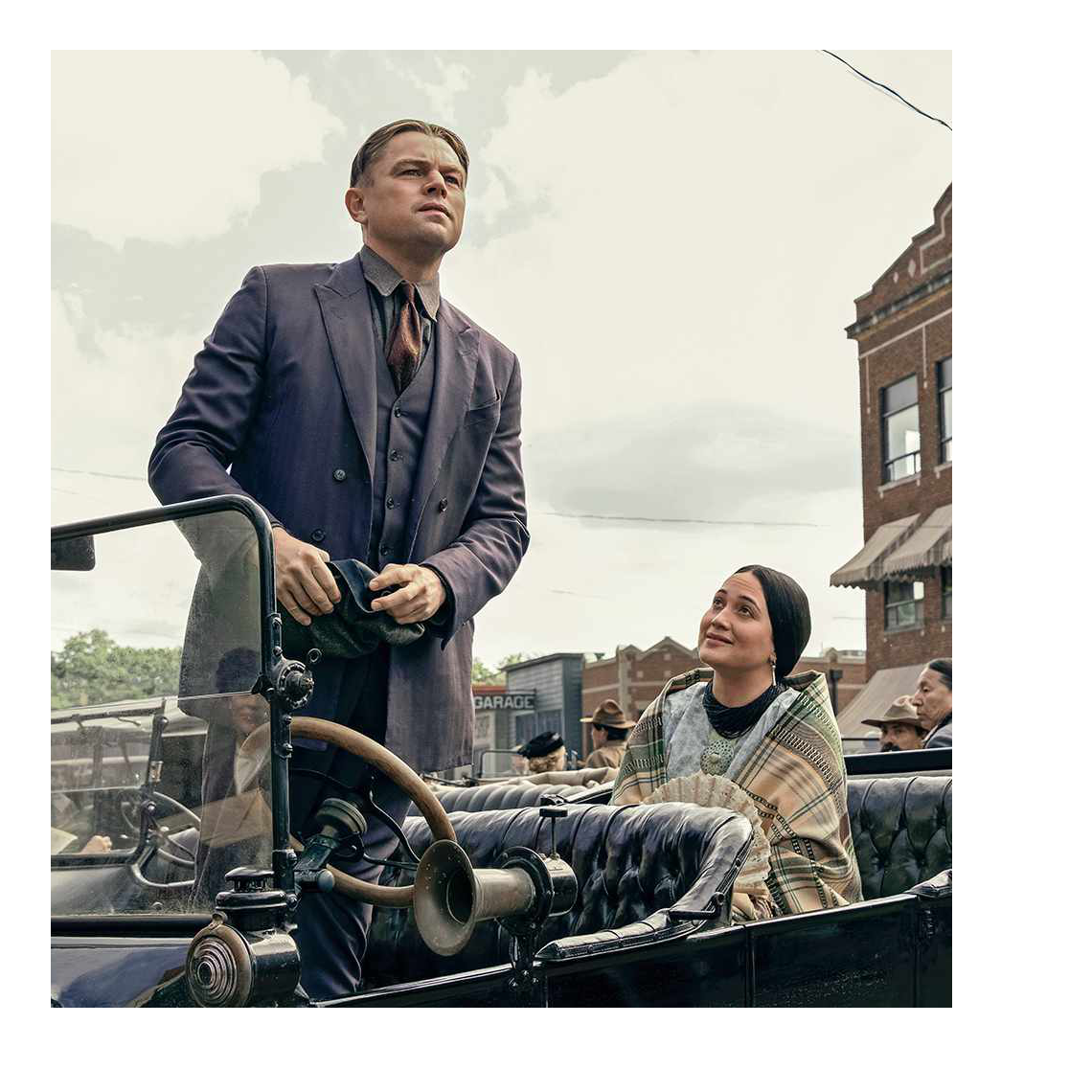 The production is absolutely convincing. Osage County and the town of Fairfax are rendered in detail. The plain western street houses multiple automobile showrooms, and the undertaker sells caskets and funerals with shameful markups. Ernest enters on a train, like one of the opportunist scum in Heaven’s Gate; the bravura aerial (matte?) shot of the train pulling into the station recalls Sergio Leone’s Once Upon a Time in The West. The great Jack Fisk was the Production Designer; everything we see goes far beyond the normal standard for authenticity. The local whites mostly mind their own business. Who questions established white authority? Who would believe that doctors would murder patients? Yet the old whites comment openly on which ‘cross-breed’ children can pass for white, and which are unfortunate savages.