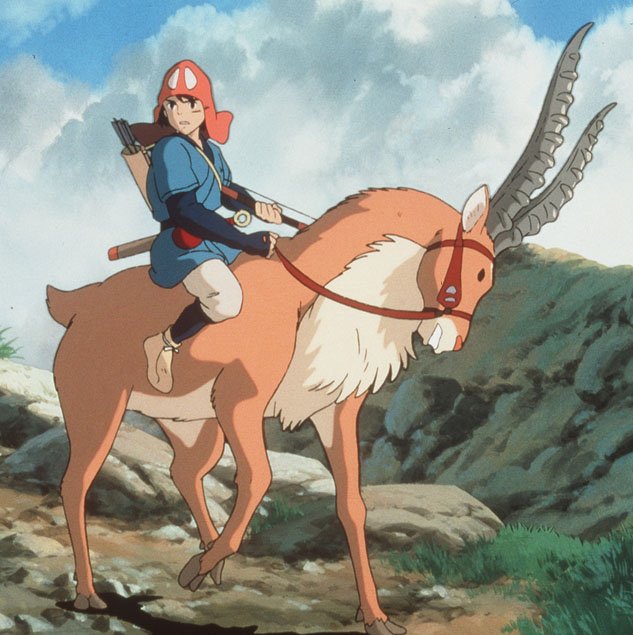 Ashitaka (Billy Crudup) on Yakul the Red Elk in Hayao Miyazaki’s “Princess Mononoke.” Miramax Films.CURRENT MOVIESPhoto/Art by: Unknown Photographer