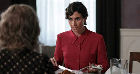 Nina Hoss succeeds in conveying the horror of having one’s chewed-up face come back to life in a new shape, without dealing with the usual superficial concerns. I’m thinking of the slick but miserably outdated ’30s versions of the same plastic surgery melodrama, starring Ingrid Bergman and Joan Crawford. Nelly is haunted, all right, but in no way is she a standard victim. Perhaps that’s the difference… there’s no irreversible ‘doom’ element to this tale. Ronald Zehrfeld starred in Barbara as well. He reminds me very much of another actor I can’t identify. Again, Zehrfeld’s Johnny is not a typical victim, having been steered into his decisions by an ugly sequence of events. The Johnny character is a good parallel to our blacklist-friendly witnesses. It’s not just that they caved in to pressure, because most of us can see ourselves doing the same thing. It’s how they behaved afterward that reveals their true characters. Nina Kunzendorf’s Lene remains the mystery at the moment; I wouldn’t be surprised if a second viewing clears up my questions of her exact relationship to Nelly, and what she’s picturing as their future relationship. Does Lene’s third-act decision provide the jolt for Nelly to reassert her true identity?