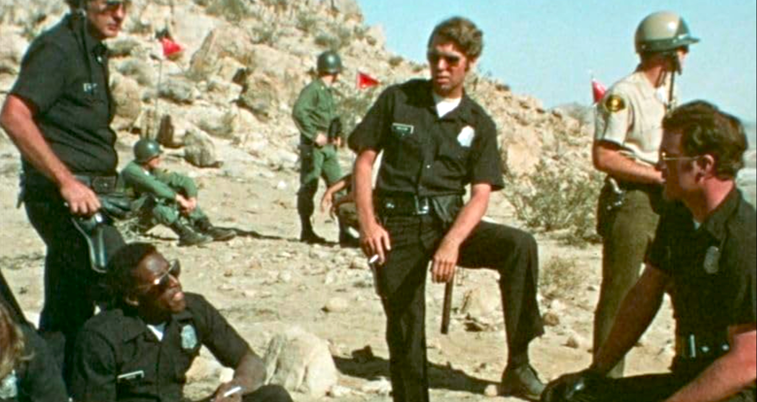 Things go very bad almost immediately. Several of the more cynical and rebellious dissenters refuse to play the game. They hang back, murder the first pursuing officer and take his weapons. The outraged police immediately decide that deadly force will be used. But did the hunters ever plan to follow ‘rules?’ They cheat from the beginning, with a lie that water will be provided at the halfway point. We have to assume that nobody is expected to survive. Punishment Park eliminates dissidents, and trains lawmen to be as merciless as SS Nazis.
