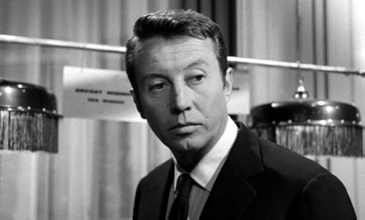 Counterfeit money floating around … an unfaithful woman involved … and a daring crook who thinks he can beat the odds. The suspenseful storyline’s turns of logic include several surprise twists, all of which a watchful viewer might be able to see coming. We follow Jabeke as he carries out his plan. It requires a highway dash down to Lyon in his Jaguar, followed by a hasty train dash to Brussels, one in which he can’t miss a connection. It’s all to establish an unbreakable alibi. One of the coolest customers in French noir, Jabeke at one point uses a disguise. His heavy-lidded eyes never betray his inner tension.
