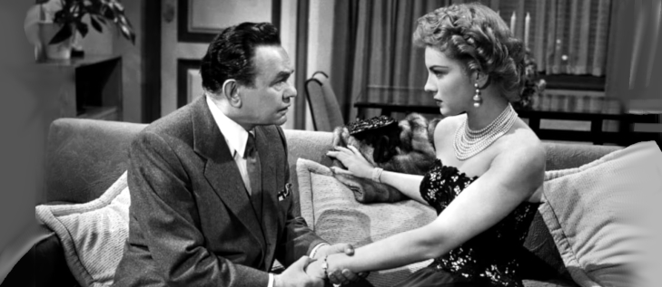 John Forsythe had been in movies for ten years but had only scored a couple of leading roles in features. He is the leading man here, even though Edward G. Robinson gets top billing. Robinson was gray-listed from major studio work, remaining a star but taking whatever smaller pictures were on offer. The script gives Robinson’s Henry Hayes several key scenes but not a lot of screen time. The great actor dominates the movie but probably didn’t get that many days’ work from it.