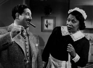 Throckmorton’s big screen career limped to the finish line with 1944’s Gildersleeve’s Ghost, a repository of every haunted house comedy cliche in the book including mad scientists, invisible women and a guy in a gorilla suit. The film’s working title, Gildersleeve, Detective, promised an intriguing new direction but Uncle Mort’s last stand is for the birds. As for that ape, it belongs to crazy Dr. Wells (played by Frank Reicher, the commander of the S.S. Venture in King Kong) and in order to round up the inquisitive simian Leroy and Peavy decide to don their own hairy costumes leading to yet another game of mistaken identity and some uninspired monkey business. And though Peary gets a chance to play his two ghostly ancestors in the film’s opening scene, the picture is so ragtag that once they exit they’re never heard from again.