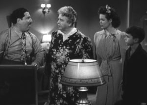 Throckmorton plays guardian to his nephew Leroy (Freddie Mercer) and his jitterbugging niece Marjorie played by Nancy Gates – an upside-down version of the family unit with the kids dispensing parental advice to their childlike “Uncle Mort.” Jane Darwell is Gildersleeve’s sage and sympathetic sister Emma and Lillian Randolph is their vigilant housekeeper Birdie. Throckmorton’s perpetual antagonists are J.W. Peavy, the petulant town druggist and Horace Hooker, the short-tempered judge always ready to throw the book at our hero.