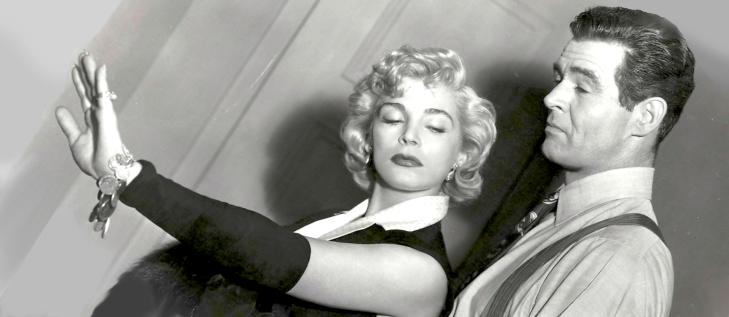 Thus new scenes are dropped into the film that don’t connect with those around them. A spectacular stunt at a railroad crossing sets up an exciting foot chase … that happens off-screen. Completely on his own, William Talman’s fearless cop Bob Johnson has his name printed in the paper so that the mob will know where to find him. He lures two hit men to his house and guns them down in a reverse ambush. Not only is there no investigation, we hear no further mention of the incident, not even a “Nice shootin’, Bob” from the other cops.