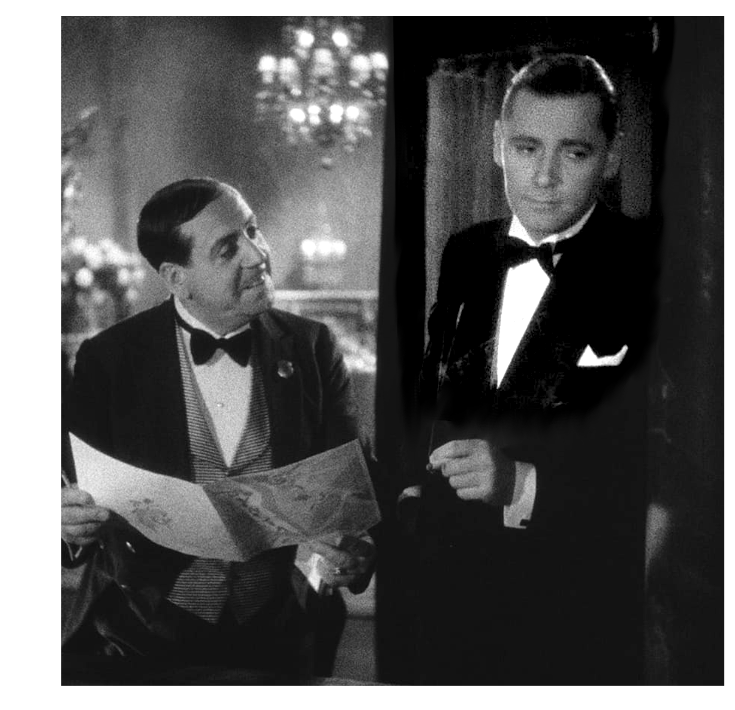 Lubitsch implies everything, not just the sex. We’re more certain of who wants to sleep with whom, than who has actually been with who. We also never actually see anybody steal anything. Lily and Gaston are shown returning many a filched item to one another, but the acts of theft aren’t shown. A shadow retreats from the window of the unconscious Filiba. In the next scene, a hotel waiter pulls an errant ivy leaf from Gaston’s coat. It’s all we need to establish Gaston’s cat-burglar credentials: he is the crook, but his mind is on love, not crime. Trouble in Paradise is about the elusive sting of romance that can touch anyone, even the most ruthless thief in Europe.