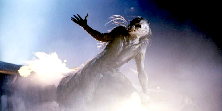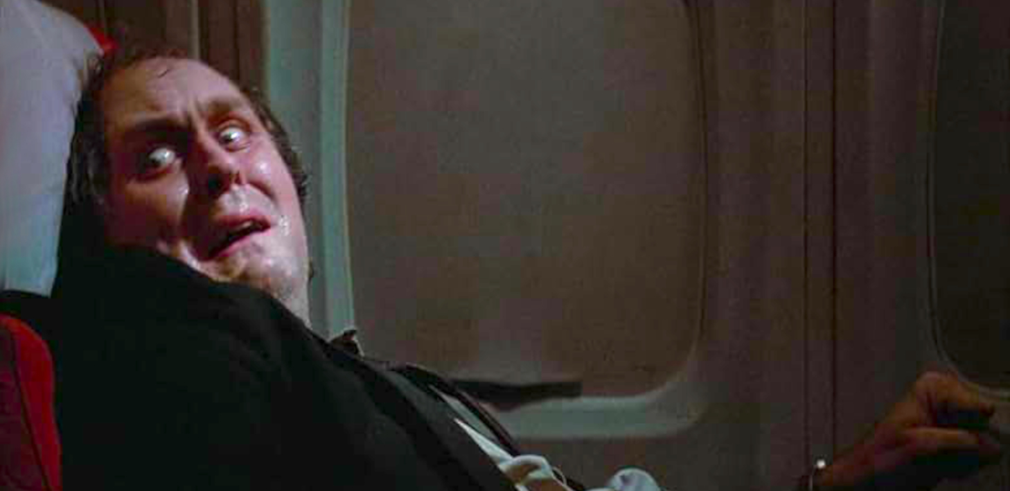 The Joe Dante episode guaranteed viewer sympathy with Kathleen Quinlan; John Lithgow does the same with Nightmare, registering an unrelieved 20 minutes of white-knuckle hysteria. When not cowering in the airliner’s lavatory, Lithgow’s John Valentine squirms and twists in his seat, his face bloodless and his fingers twitching. And this is before he sees the creature on the wing, the famous gremlin that terrified William Shatner in the original 1963 TV episode. Most of the action is focused on John’s window. Only he sees the monster tearing away at engine number one.
