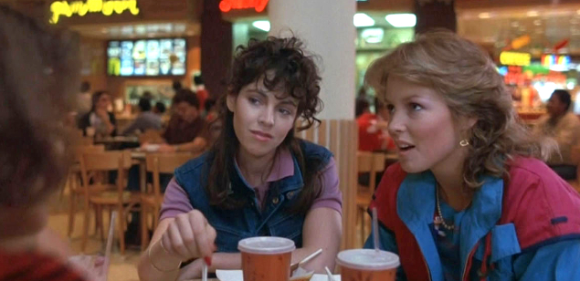 Popular high school girl Julie Richmond (Deborah Foreman) is a model American Miss living the good life in the right part of the Valley, South of the 101 Freeway. A good student, she is indulged by her easygoing ex- hippie parents Steve and Sarah (Frederick Forrest & Colleen Camp, both from Apocalypse Now) who run a Health Food store and want their daughter to have total freedom. Julie is actually miffed when, after staying out all night, her parents assume she’s been sexually active. Julie’s crowd is an insular (in-bred?) pack of entitled, coddled teens given the free run of houses for weekend parties. Drinking is expected and perhaps a little drugs or sex might be shared in upstair bedrooms. Julie’s close-knit group of consumerist girlfriends meet to shop in the Sherman Oaks Mall and have regular sleep-over pajama parties where they discuss boys. Julie breaks up with her snotty possessive boyfriend Tommy (Michael Bowen) because she feels used. At the next party he immediately pressure-talks her best friend Loryn (Elizabeth Daily) into bed. This is a parent-hosted party at the house of Suzi (Michelle Meyrink), who is distressed to see her own mother Beth (Lee Purcell) shoot some fairly direct come-on signals to a boy she admires, Skip (David Ensor).