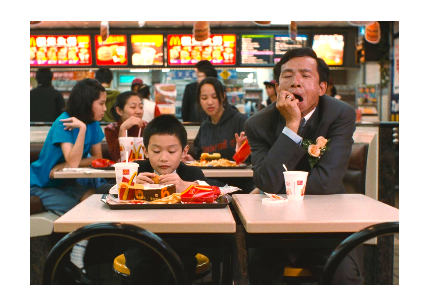 The captivating Yi Yi has an arresting, disarming style. It uses many locked-off camera angles yet never feel static; we often observe groups of people from afar or watch couples in long shot while the entire city goes about its business around them. We can’t help but read meanings into these held shots. Two teenagers stand under a freeway ramp. When they finally kiss, we see a traffic light go green in the background, as if magically approving of the romance of the moment.
